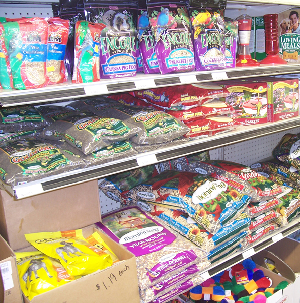 leashes and foods for a variety of animals. Our bird supply section caters to bird lovers with bird food and suet’s. We also stock Oliger brand bird seed and sell bulk, raw shelled peanuts by the pound or by 25lb or 50lb bags. (Animal use only)